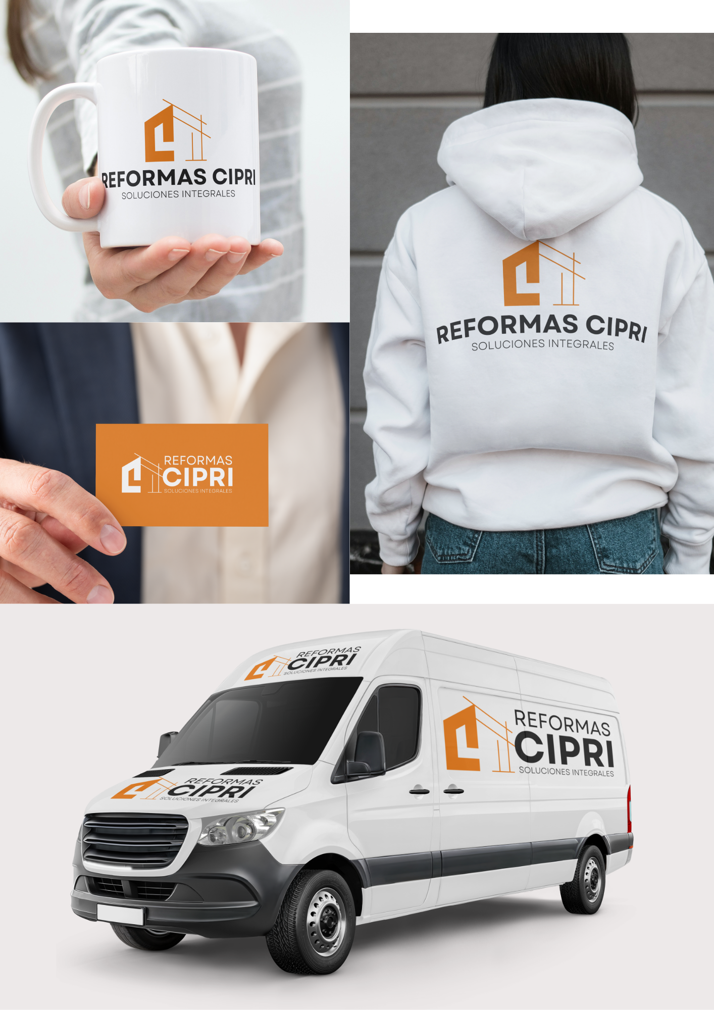 Reformas Cipri necesitaba una identidad visual que reflejara su profesionalidad y experiencia en el sector de las reformas integrales. Se diseñó un logotipo limpio y moderno, donde el símbolo gráfico representa una estructura arquitectónica simplificada, integrando visualmente la inicial de la marca.